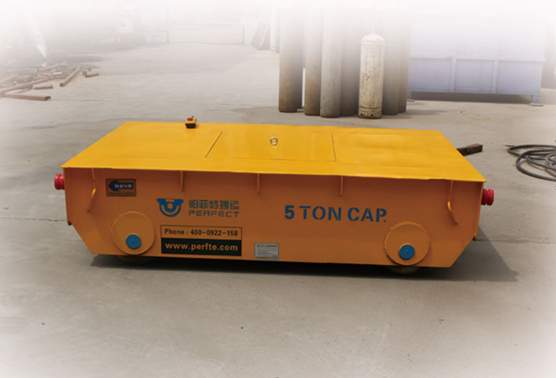 載重量5t,臺面厚度8mm,小車尺寸2000*1500,軌距是1250mm,車輪采用鑄鋼車輪,蓄電池供電,無線遙控控制,速度可調