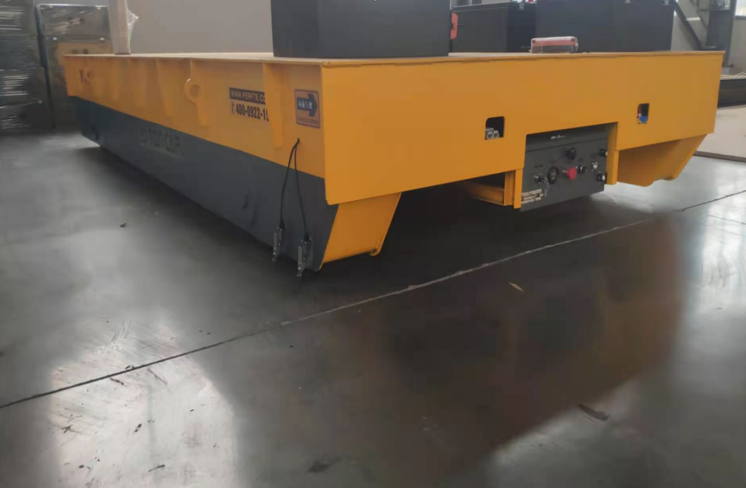載重量5t,臺面厚度8mm,小車尺寸2000*1500,軌距是1250mm,車輪采用鑄鋼車輪,蓄電池供電,無線遙控控制,速度可調