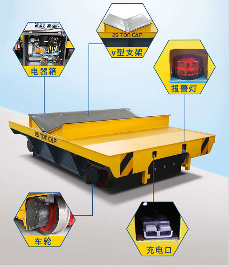 軌道上行駛的電動平板車其工作原理都是通過電源驅動電機牽引平板車在軌道上行駛,來轉運重型物料和設備,也可以來牽引其他的平板車和車廂等,該車的操作是很簡單的,我們都是使用的遙控或者自能控制系統控制車的行駛,不用擔心操作不會,我們在裝載貨物的時候要注意它的擺放,操作中不要改變車運行的方向,如果工作中遇到停電的情況,我們要及時關閉電源或者開關,我們的車是我們工作中的好幫手,我們要定期給他進行檢查,發現問題及時解決可以增加我們的工作時長。